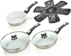 GRÄWE Aluminium-Pfannenset, Ø 20 Cm, Ø 24 Cm, Ø 28 Cm, Beschichtet, 3-teilig, Inkl. Pfannenwender