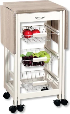 Kitchentrolley – Küchenwagen Mit 3 Ablagen 40x26x62 Cm – Farbe: Schwarz