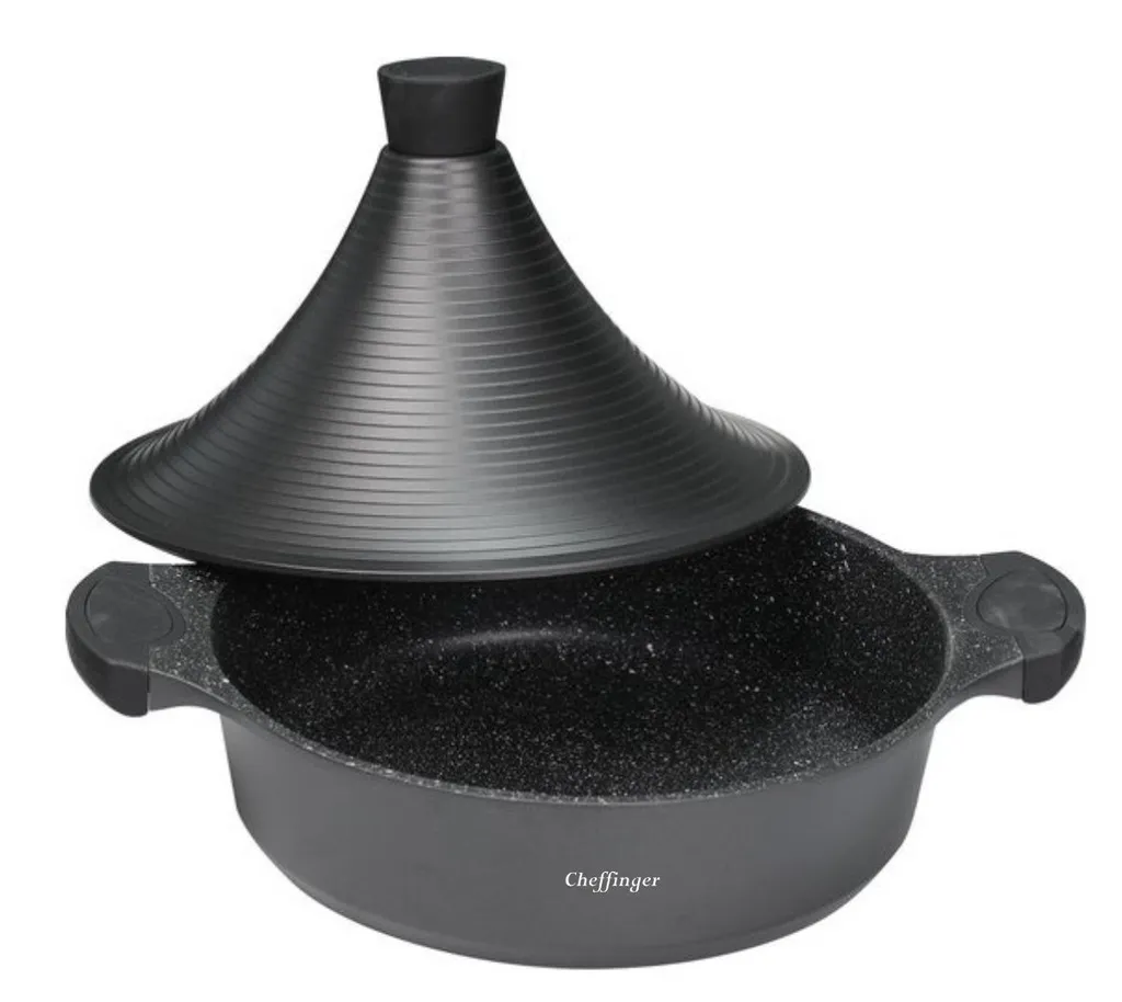 – KEGELFÖRMIGER KERAMIKDECKEL – Aufgrund des einzigartigen Designs speichert der kegelförmige Keramikdeckel die Feuchtigkeit, die beim Kochen zirkuliert, und bereichert das Essen mit kräftigen Aromen.