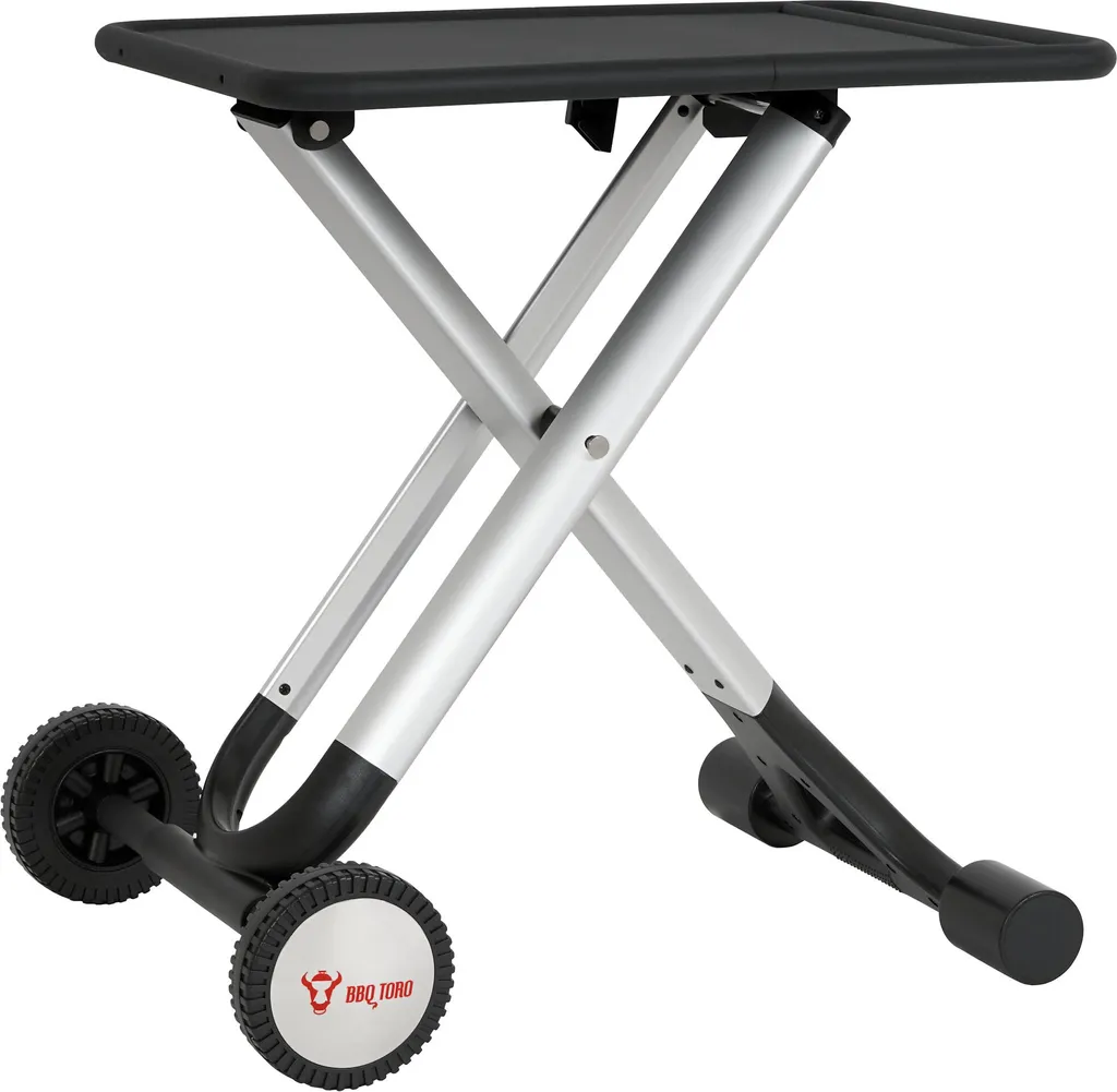 Der Grillwagen von BBQ-Toro ist vielseitig einsetzbar und auch als Beistelltisch geeignet. Stellen Sie Ihren Tischgrill auf die Ablage oder bereiten Sie Ihre Speisen direkt am Grill zu. Der Beistellwagen lässt sich leicht und platzsparend zusammenlegen. Mit dem zusammengeklappten Maß von (L) 97 x (T) 51 x (H) 14 cm passt der Tisch ideal in einen schmalen Stauraum oder eine Nische.