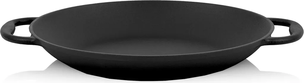 Diese traditionelle Paella-Pfanne aus Gusseisen, mit einem Durchmesser von 36 cm, ist perfekt für die Zubereitung spanischer Speisen gegeignet. Sie können mehrere Zutaten anbraten und die Hitze über die große Fläche gleichmäßig verteilen. Egal ob Fleisch, Fisch, Gemüse oder Meeresfrüchte, in der Paellapfanne können Sie die verschiedensten Gerichte zubereiten und anschließend stilvoll in der Pfanne servieren. Hier kommt gleich mediterranes Urlaubsfeeling auf! Die Pfanne hat 2 robuste Griffe aus Gusseisen für ein sicheres Handling. Wegen des großen flachen Bodens ist die Gusspfanne besonders für den Gasherd, Grill und traditionell für eine Zubereitung auf offenem Feuer geeignet.