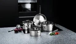 – Ein einzigartiger Satz Töpfe mit dem „besten“ Red Dot Award 2020 Deutschland – besteht aus Edelstahl in 18/10 – 3 Schicht dickem Sandwichboden verteilt erheblich Wärme und behält dann die Temperatur bei. Der Topf hat einen Glasdeckel mit einem Silikon Edge, dank der es perfekt in den Körper des Topfes haftet – Gerichte mit hohem Sandwichboden und genau passt ein Deckel in den Energieeinsparungen beim Kochen erheblich. Materialien, perfekter Arbeiter? – Noble Edelstahl 18/10 – 3 – Dicke Sandwichbohrboden – perfekt enge Glasdeckel – Silikonkante von Deckeln mit Integ REDED CORNED LOJES – Ausgezeichnete Wärmeverteilung, wirtschaftliches Kochen – patentiertes Dampfentfernungssystem – Alle Griffe bleiben immer kühl – resistent gegen Korrosion, Abrieb und Säuren – hygienische Gerichte, die keine schädlichen Substanzen für alle Arten von Kochflächen undöfen enthalten – auch für den Ofen geeignet für den Ofen geeignet – präzises Design und langes Leben