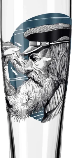 Seemann und Krake. Das Design inszeniert mit akribisch ausgeführten Zeichnungen eine uralte Volkssage, die auf den Weizengläsern in mitreißenden Arrangements für neue Begeisterungsstürme sorgt.