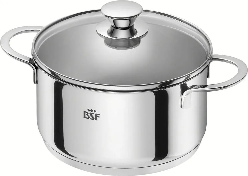 Diese Töpfe haben einen Sandwichboden mit einem Kern aus Aluminium, der die Hitze optimal verteilt. Das Kochgeschirrset von BSF können Sie auf jeder Herdart und sogar auf einem Induktionskochfeld verwenden.