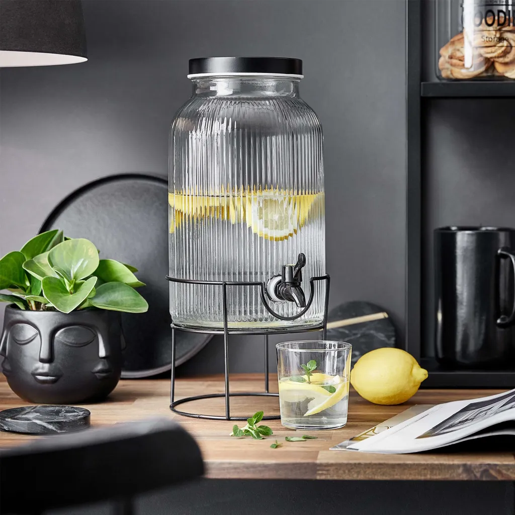 Große Familie, mehrere Gäste oder viele Kollegen? Dann servieren Sie bis zu 5,7 Liter Ihrer selbstgemachten Limo oder Ihrer persönlichen Eistee-Kreation im dekorativen Fountain Getränkespender mit Ständer. Hier kann sich jeder einfach bedienen – am Buffet oder auf dem gedeckten Tisch. Appetitlich sind dabei die Einblicke durch das Glas und der Schutz vor Insekten, Staub oder auch Konfetti in den Getränken.