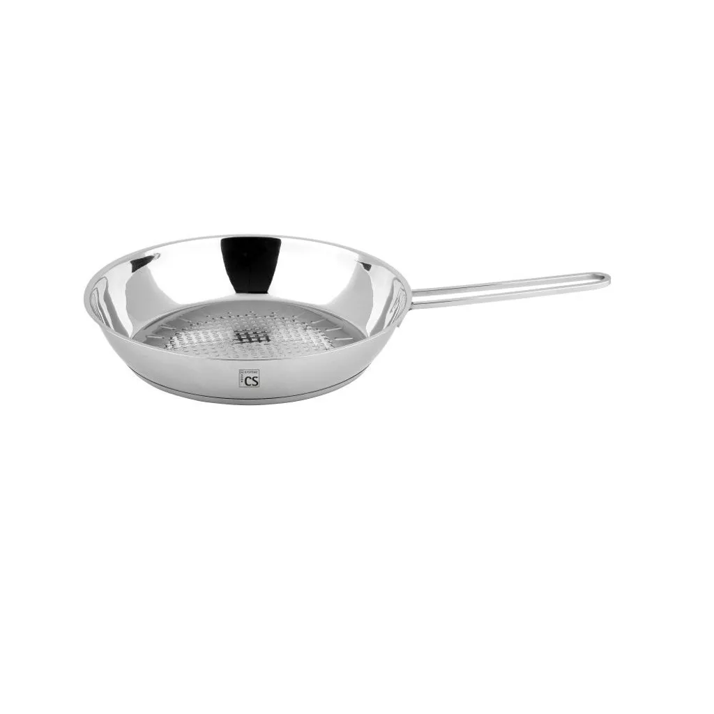 Suchst du eine Pfanne mit Wabenboden, die zudem noch induktionsfähig ist? Dann haben wir hier genau das richtige für dich. Die Pfannen-Serie TRIER ist aus rostfreiem Edelstahl gefertigt und verfügt neben dem energiesparenden Kapselboden über einen hitzeabweisenden Edelstahlgriff. Eine gleichmäßige Wärmeverteilung sorgt für einen optimalen Garprozess.