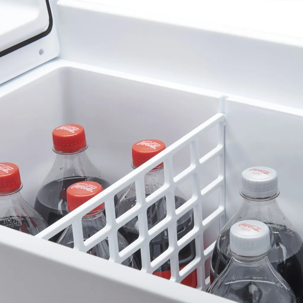 Ein geteilter Deckel verhindert, dass beim Öffnen zu viel kalte Luft austritt. Gleichzeitig sorgen das herausnehmbare Trenngitter im Kühlfach und das Kabelfach für Ordnung. Entdecken Sie die neue Art der Unabhängigkeit mit Freunden und ausreichend gekühlten Getränken für eine tolle Party!