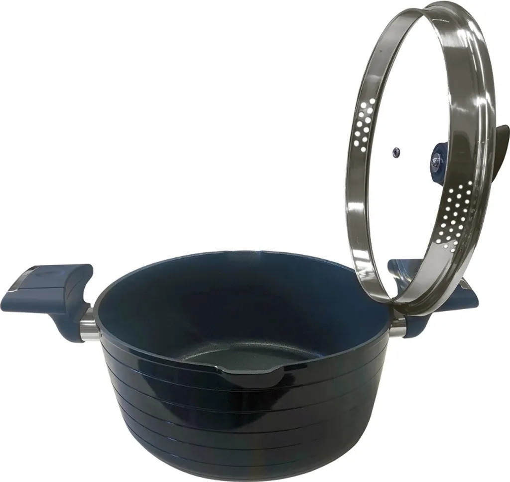 – Deckel der Töpfe aus Glas mit Abdampfloch undpraktischem formschönen Softgriffen