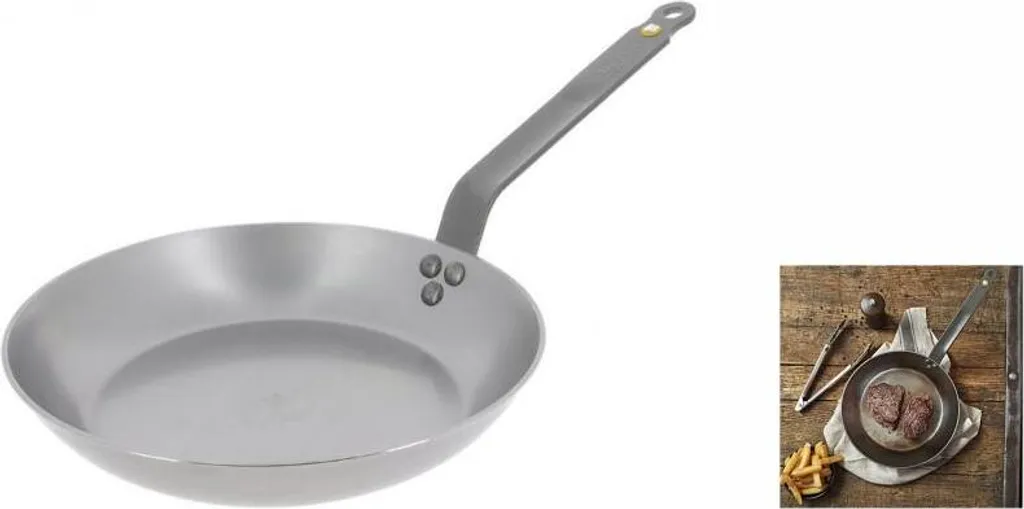- Bitte beachten : die Eisenstahl Pfannen von de Buyer sind perfekte Arbeitsgeräte. Eventuell vorhandene Kratzer oder Schleifspuren sind produktionstechnisch bedingt und bedeuten keinerlei Qualitäts- und Gebrauchsbeeinträchtigung.
