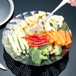 Mehrfachverwendung: zum Dämpfen, wasserarmen Garen, schonendes Erhitzen und Kochen, Blanchieren. Kann zum Garen von Gemüse, Meeresfrüchten, Knödeln, und Fisch etc. Es kann nicht nur als Dampfkorb, sondern auch als Obstbehälter verwendet werden.