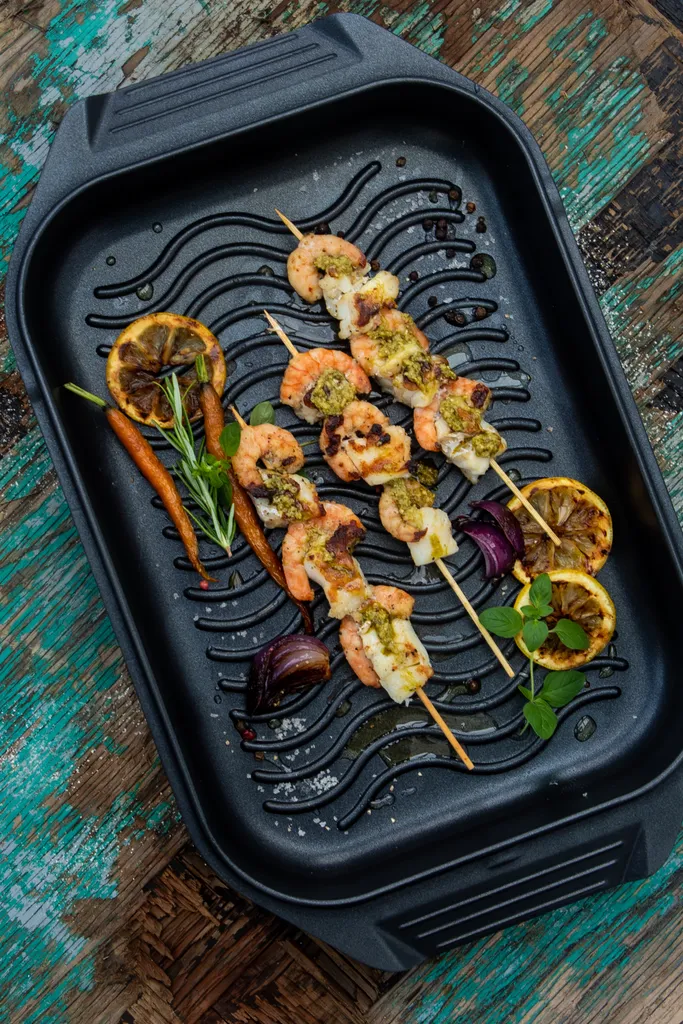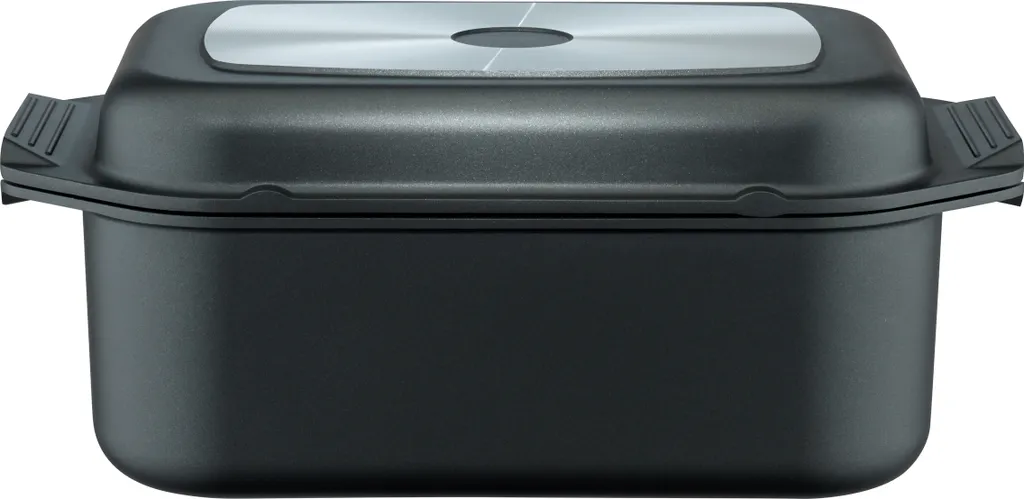 Quadratisch, praktisch, gut. Der Alugussbräter ist vielseitig einsetzbar. So kann der Deckel auch als Grillpfanne verwendet werden. Durch seine Antihaftversiegelung ist er zudem sehr leicht zu reinigen und ideal für den fettarmen, fettfreien Einsatz und somit perfekt für die leichte und schonende Zubereitung Ihrer Speisen. Der Bräter ist Backofenfest bis 240°C und spülmaschinengeeignet. Für alle Herdarten, ausser Induktion. Durchmesser 42 x 25,5, Höhe 17 cm, 6,6 Liter