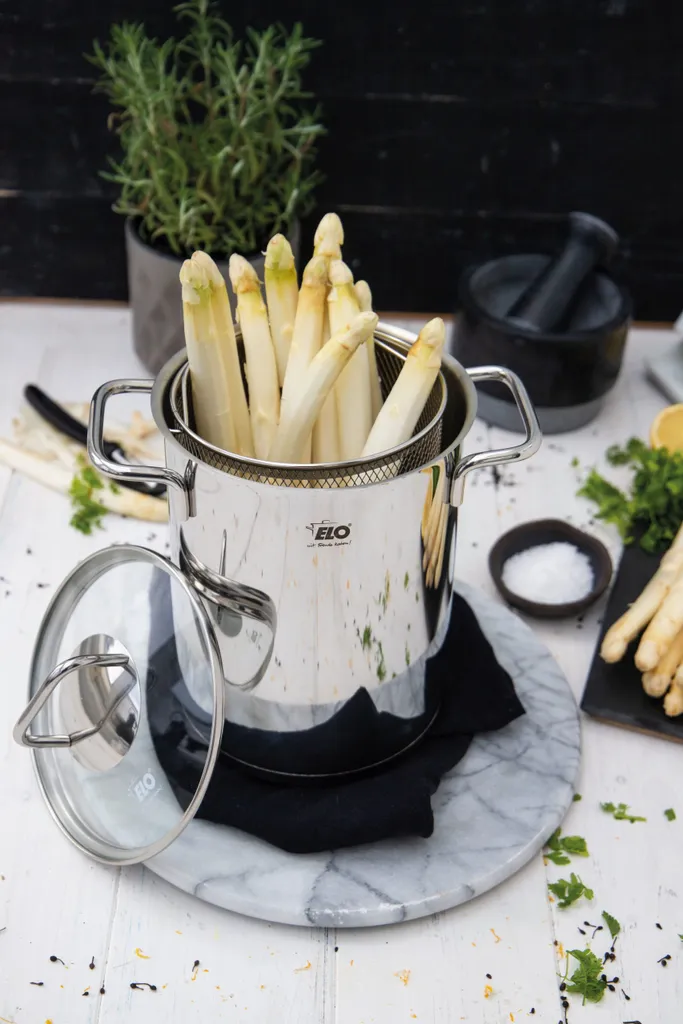 Het witte goud van Hollandse bodem bereid je het beste in de aspergepan van Elo. De pan is gemaakt van 18/10 edelstaal en voorzien van massieve lekvrije grepen.
