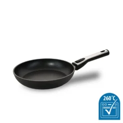 Dank der abnehmbaren Griffe können die Bratpfannen platzsparend verstaut und bei bis zu 260°C im Backofen genutzt werden. Die ansprechenden Design-Glasdeckel mit Metallknauf sind ebenfalls backofengeeignet und ermöglichen praktisches Sichtkochen.
