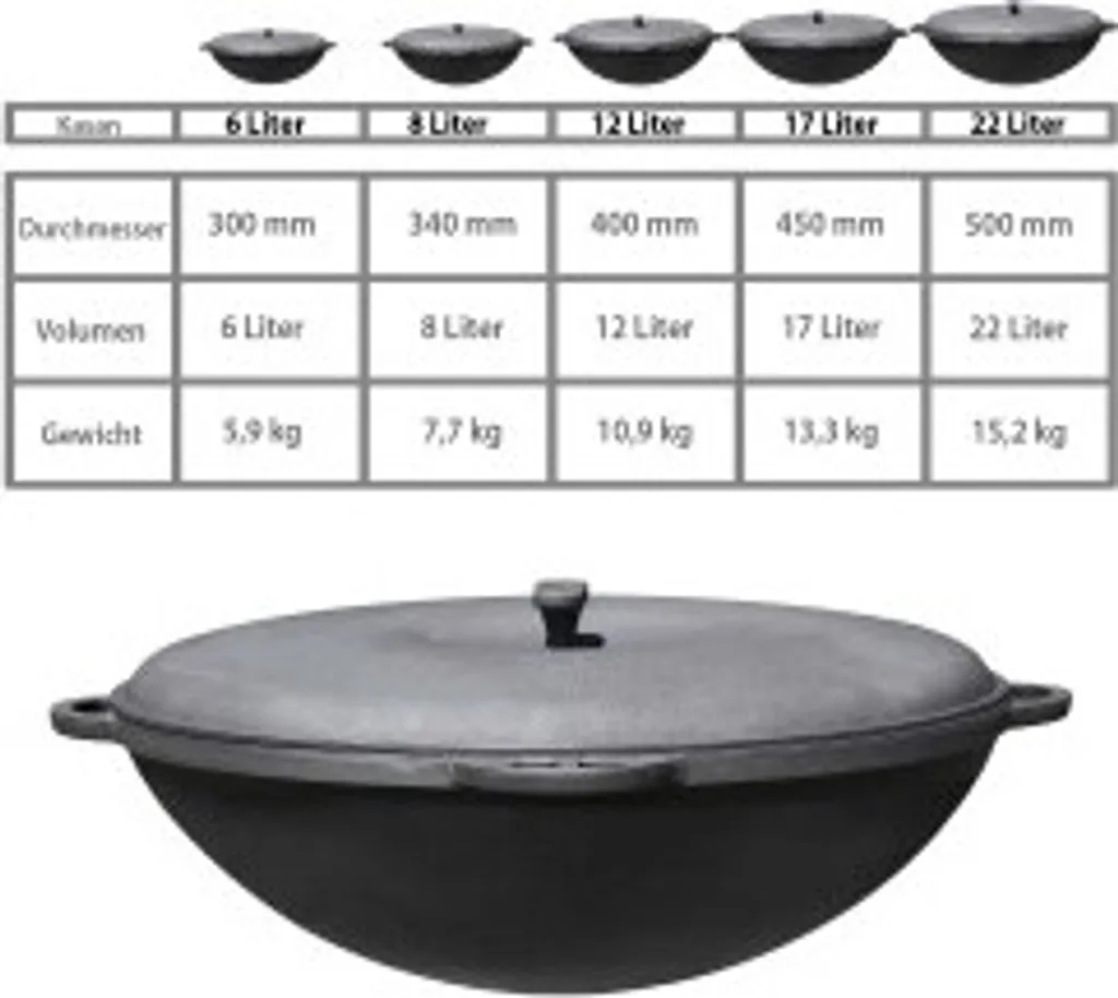 Kasan: Durchmesser 450 mm, Volume 17 l, Gewicht 8,6 kg