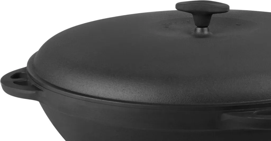 Mit einer sehr geringen Wärmeleitfähigkeit für Metall, Gusseisen Wärmen und lange speichert Wärme, die ebenso razpredelyaetsya alle über die Oberfläche der Gerichte, die sehr wichtig für die Kochen von jeder Art von Wärme ist. Die gleichmäßige Erwärmung verhindert das Anhaften von Speisen, insbesondere beim Kochen, z. B. von Fleisch, Geflügel oder Pilaw.