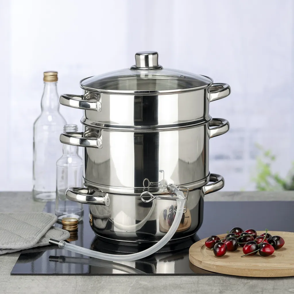 Mit diesem Dampfentsafter, stellen Sie Ihren eigenen Saft her. Bewahren Sie Vitamine und Mineralstoffe der Früchte und genießen Sie Saft ohne Konservierungsstoffe. Dieser Edelstahl Topf ist zur Saftgewinnung und zum Dünsten geeignet. Das Entsaften kann mit Gemüse, Kräutern oder Obst erfolgen, Verarbeitungsvorschläge sowie eine Dampfzeitangabe ist in der Bedienungsanleitung vorhanden.