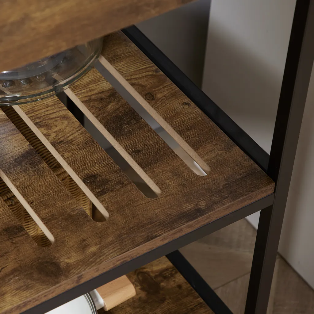 Kommt mit einer Arbeitsplatte aus Holzwerkstoff und einem Stahlrahmen. Dieser Küchentrolley ist leicht zu reinigen und eignet sich für einen zuverlässigen, täglichen Gebrauch.