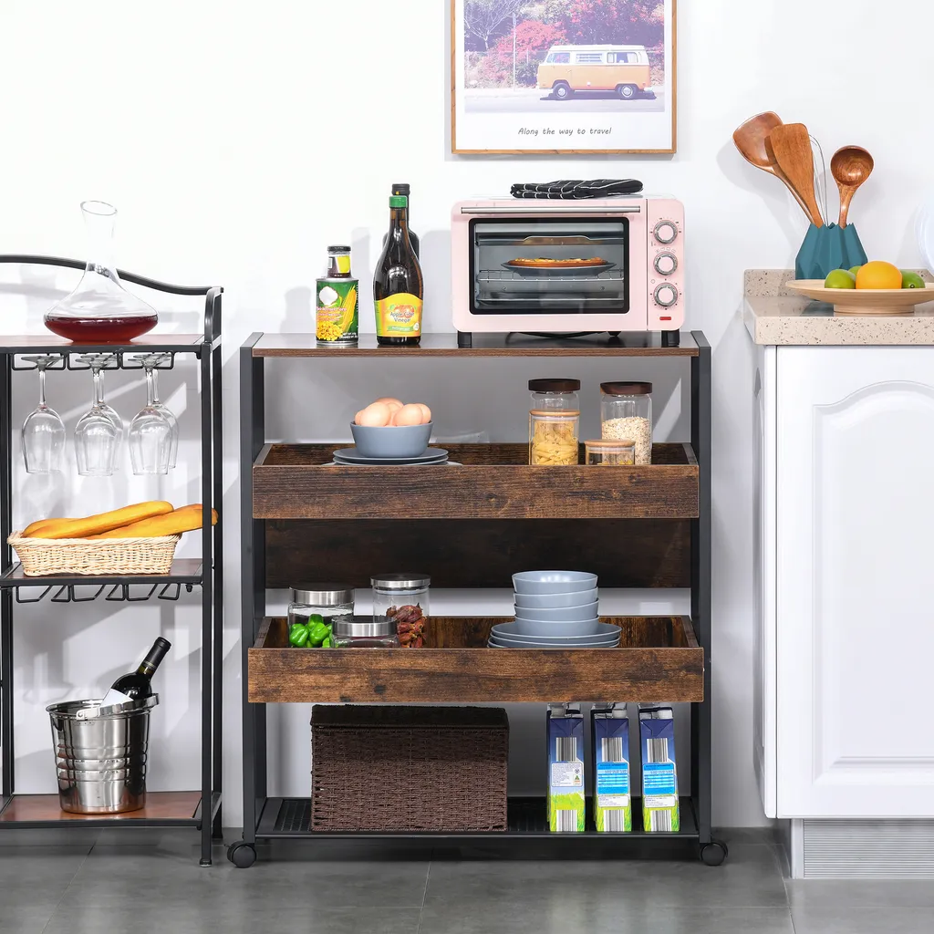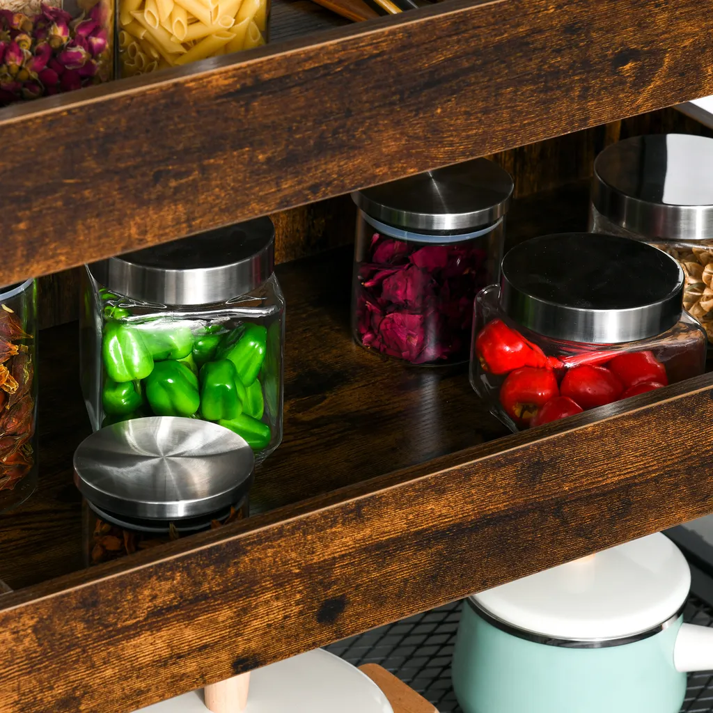 Die 3-stufigen Regale und eine breite Arbeitsplatte bieten Ihnen reichlich Stauraum für Ihre Küchen- und Essensutensilien. Halbgeschlossene Regale verhindern, dass Ihre Gegenstände herunterfallen.
