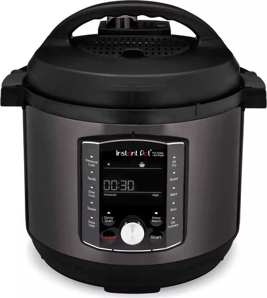 Instant Pot Pro Crisp mit Deckel Air Fryer ist 11 Geräte in 1 und ist die leistungsstärkste Version mit 2 praktischen abnehmbaren Deckeln, um Ihren Instant Pot in eine Heißluftfritteuse zu verwandeln.