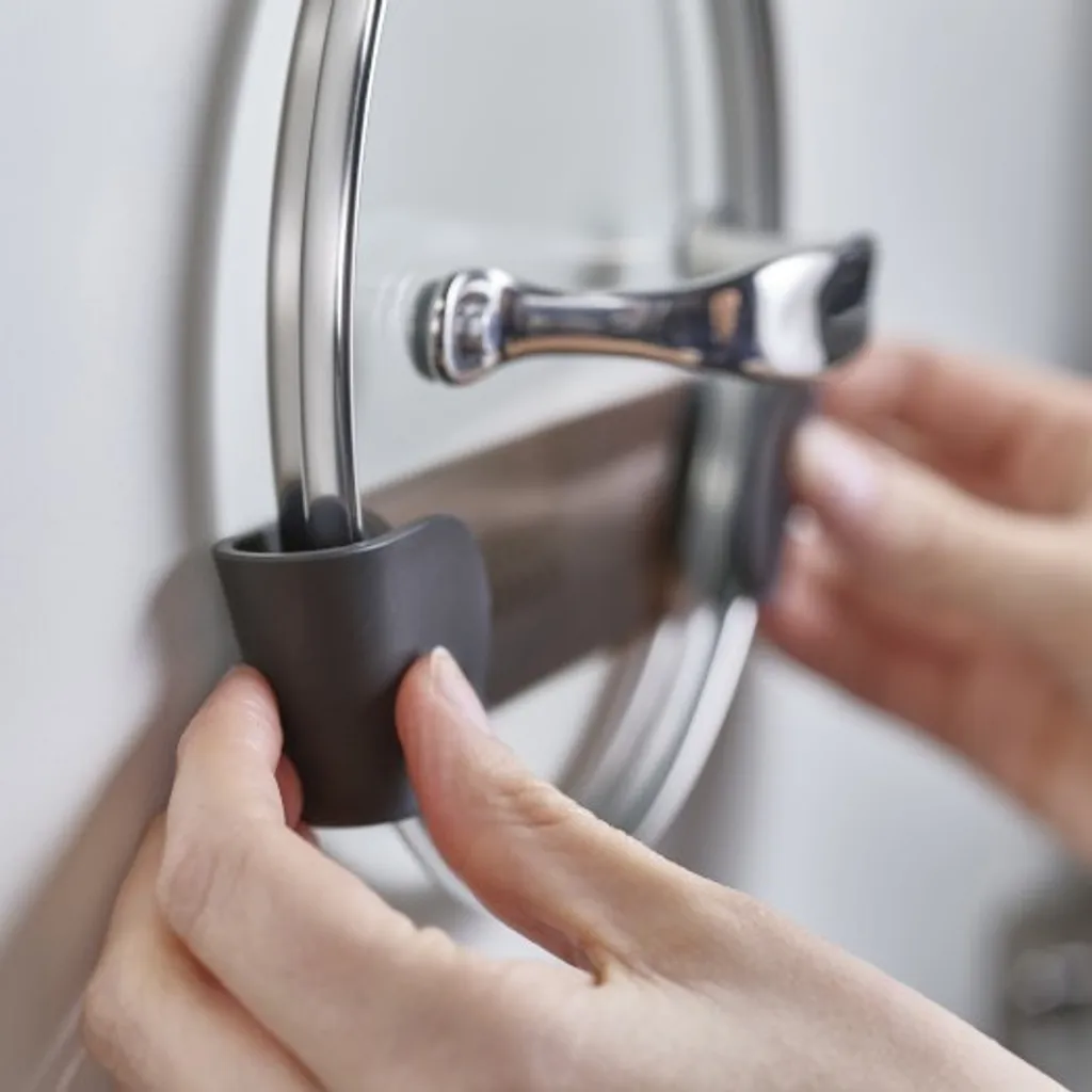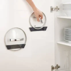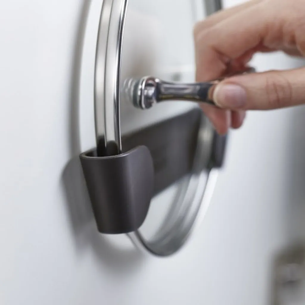 Jeder einzelne Halter in diesem Set von 4 Pfannendeckelhaltern kann an der Innenseite einer Schranktür befestigt werden, um Ihre Küche zu organisieren und das Auffinden des benötigten Deckels zu erleichtern.