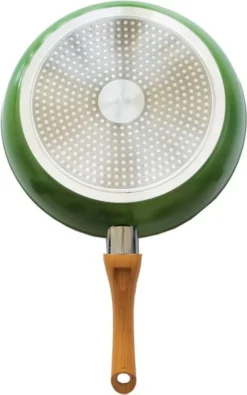 - Pflanzliche CeraVegan-Antihaftbeschichtung: Die Eco Bratpfanne ist mit einer pflanzlichen CeraVegan-Antihaftbeschichtung versehen. Die Beschichtung besteht aus einer Mischung aus Avocadoöl und Wasser und bildet einen natürlichen Mikrofilm, der für einen einzigartigen Antihafteffekt sorgt.