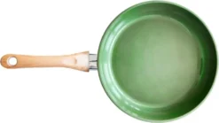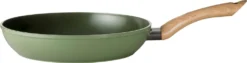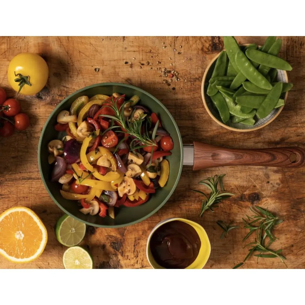 hochwertige Aluminium-Pfanne mit CeraVegan pflanzlicher Keramik-Antihaftbeschichtung auf Basis von Avocado-Öl, zum Braten und Kochen ohne Fett, kratzunempfindlich und robust, gleichmäßige Hitzeverteilung, kein Anbrennen und Anhaften, ideal zum scharfen Anbraten, Griff in Holzoptik, spülmaschinengeeignet, backofengeeignet bis 180 °C, für alle Herdarten geeignet