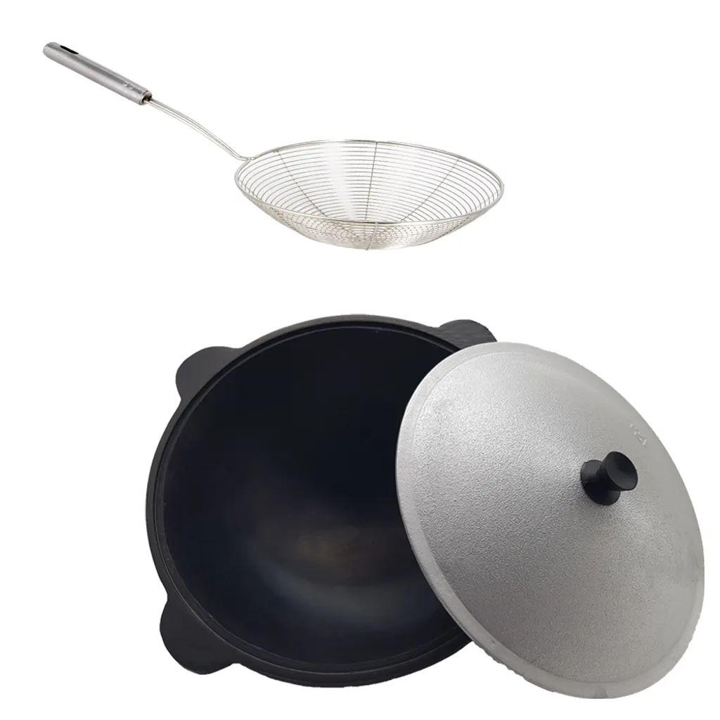 Kasan Gusseisen 16L Uzbekischer Kazan mit Aludeckel und Edelstahlsieb