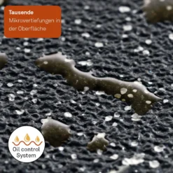 die Pfanne ist mit einer rauen Antihaftbeschichtung versehen, die für eine optimale und gleichmäßige Fettverteilung auf der gesamten Oberfläche sorgt – das Öl tropft nicht zum Rand hin ab, was ein gesundes und gründliches Braten mit sehr wenig Fett ermöglicht
