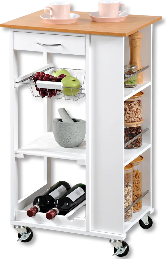Der KESPER® Küchenwagen wurde konzipiert, um Ihnen die Arbeit in der Küche noch angenehmer zu gestalten. Ausgestattet mit 4 voll beweglichen Lenkrollen können Sie Ihren Küchenwagen stets neu positionieren und dank zwei Feststellbremsen sicher an Ort und Stelle parken. Dadurch steht Ihr Küchenwagen Ihnen nie im Weg und kann ebenso gut als Servierwagen für Geschirr, Gläser und Speisen verwendet werden, um unnötig viele Wege zu sparen. Ihr KESPER® Servierwagen entpuppt sich zudem als wahrlich attraktives Einrichtungselement, integriert er sich mit seiner schlichten Eleganz doch sofort in Ihr Heim. Ansprechend, funktional, platzsparend. Eigenschaften, die der KESPER® Küchenwagen vereint, um Ihnen die Arbeit in der Küche noch angenehmer zu gestalten.