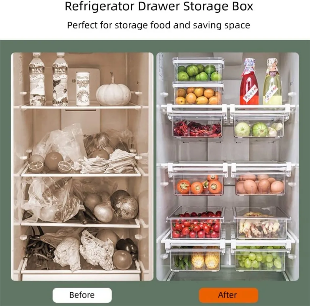 Platzsparer: Der Organizer mit durchsichtigen Schubladen eignet sich perfekt zum Organisieren von Getränken in Dosen, Gemüse, Fleisch, Käse, gefrorenem Gemüse und anderen Lebensmitteln im Kühlschrank, Gefrierschrank und verschwendetem Platz unter Küchenschränken.