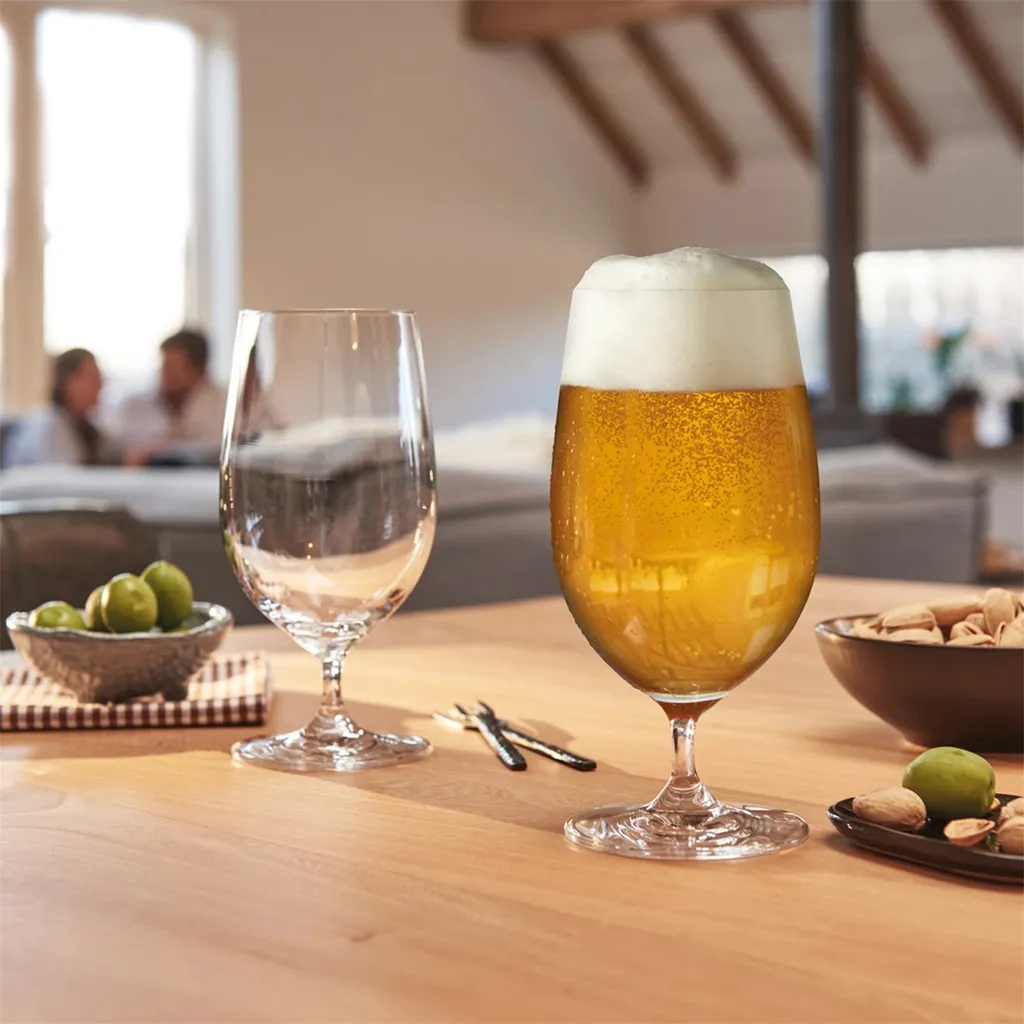 Dieses Bierglas überzeugt vor allem durch seinen gezogenen Stiel.