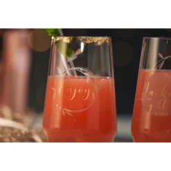 LEONARDO Set 2 Trinkgläser + 2 Glastrinkhalme mit Motiv „Enjoy“ PRESENTE im Geschenkkarton
