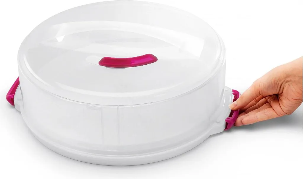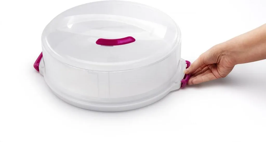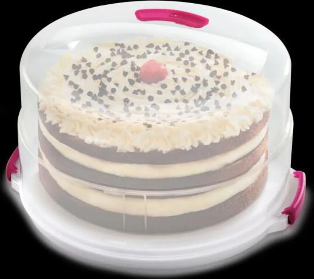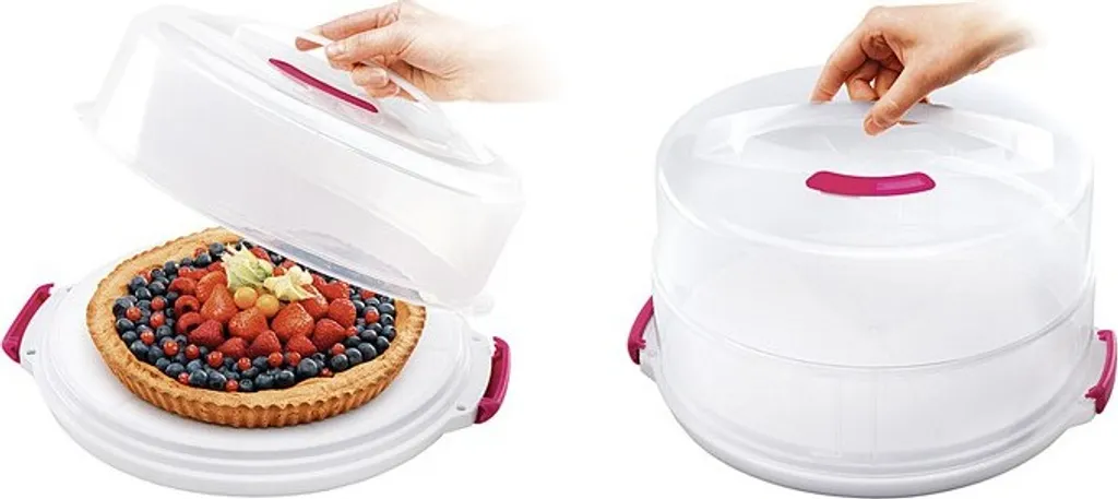 Der Behälter hält Ihren Kuchen frisch und lässt sich perfekt transportieren. Der Kuchen ist durch das einfache und bewährte Klickverschluss-System sicher verstaut.