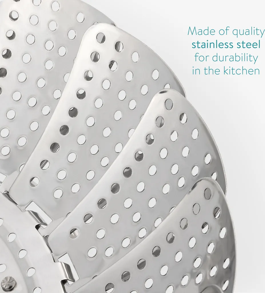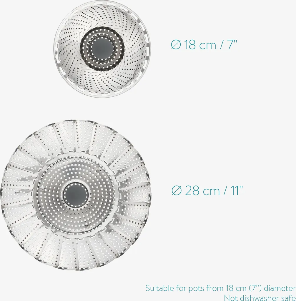 - MULTIFUNKTIONAL: Der Dampfgareinsatz eignet sich super als Einsatz für Töpfe ab 18cm Durchmesser. Er ist an verschiedene Topfgrößen anpassbar. Perfekt zur Zubereitung von beispielsweise Gemüse oder Meeresfrüchten.