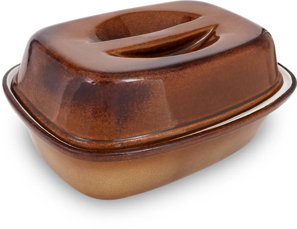 Die Auflagefläche sowie die Unterseite des Deckels sind unglasiert und nach dem Brennen per Hand abgeschliffen. Hierdurch sitzt der Deckel besonders gut auf, wodurch Ihre Gerichte keinen Geschmack beim Schmoren verlieren und durch einen leichten Überdruck schneller zart werden.