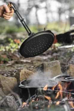 Der aus robustem Gusseisen gefertigte Feuertopf ist der ideale Begleiter für Dich beim Camping-, Outdoor- und Freizeitaktivitäten.