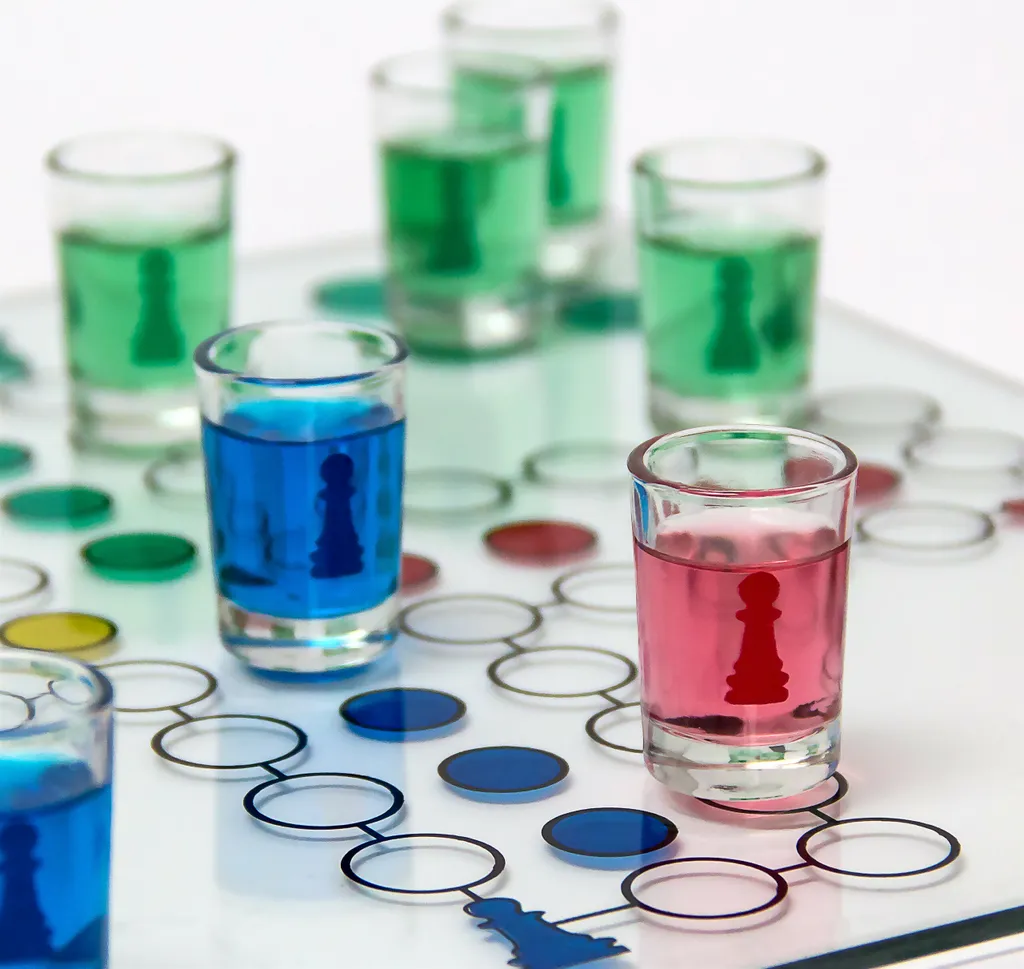 Das Würfel-Trinkspiel wird der Hit auf jeder Party und spielt sich nach klassischem Vorbild. Drinking Ludo bleibt dabei dem beliebten Spielprinzip treu, nur das hier statt kleinen Figuren Shotgläser bewegt werden. Diese sind zu leeren, wenn man „herausgeschmissen“ wird.