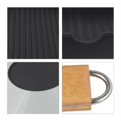 Die Grillpfanne eignet sich perfekt für die Zubereitung verschiedener leckerer Speisen. Die Pfanne ist ein starker Mitstreiter für die Grillsaison, eignet sich aber auch für die heimische Herdplatte. Die Rillen halten Öle und Fette von Fleisch, Gemüse und Co. fern. Dank der Antihaftbeschichtung geht die Reinigung besonders leicht von der Hand. Smart ist auch der Holzgriff, den Sie klappen, abnehmen und dazu nutzen können, die Bratpfanne griffbereit aufzuhängen.
