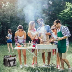 Egal ob ein Picknick im Park, ein kühles Getränk am Strand oder ein paar Snacks beim Camping – mit der Kühltasche haben Sie immer einen Leckerbissen oder eine kleine Erfrischung dabei. Die Thermotasche kann sowohl zum kühl- als auch zum warmhalten verwendet werden. Mit dem verstellbaren Tragegurt und dem praktischen Griff können Sie die Isotasche bequem transportieren. Nach Gebrauch lässt sich die Tasche einfach zusammenfalten und platzsparend verstauen.