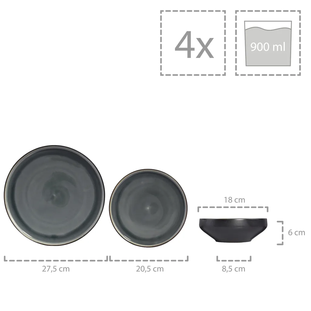 Außen schwarz, Innen grau, das Service Helsinki überzeugt mit seinen dunklen Farben, welche einen hochwertigen Kontrast zwischen Teller und Speisen erzeugen, wodurch Ihre Gerichte deutlich in den Vordergrund treten und perfekt präsentiert werden.
