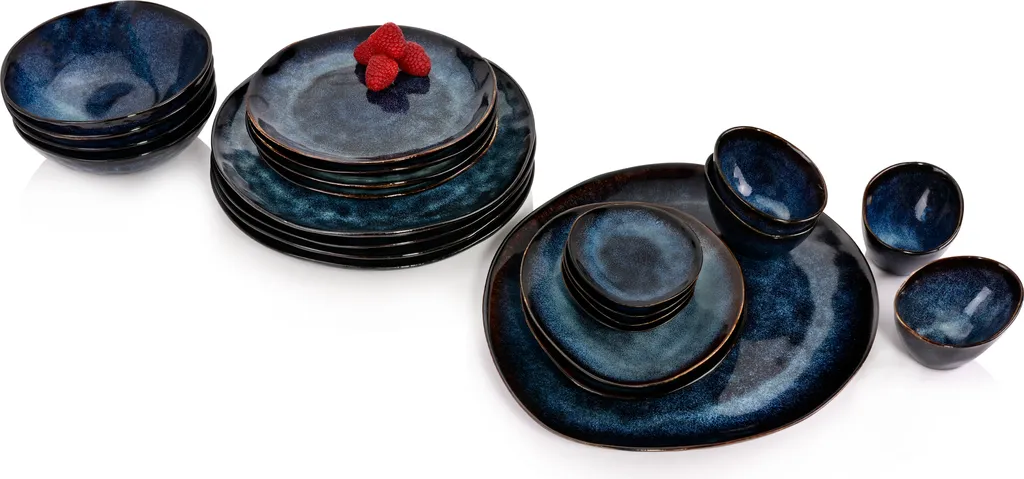 Auf jedem Teller und jeder Schale variiert sowohl die Farbdeckung als auch die Maserung. Dadurch ist jedes Einzelteil ein Unikat, welches Sie sich nach Hause holen können. Die glänzende Glasur sorgt für einen Hau Eleganz und wertet die Teller zusätzlich auf.