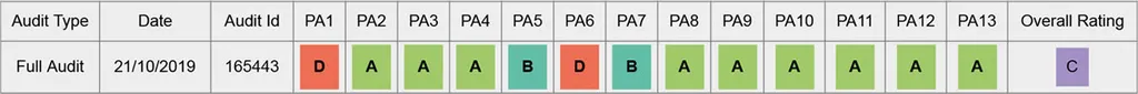 Soziales Managementsystem (Note D), Arbeitnehmerschutz (A), Recht auf Kollektivverhandlungen/Vereinigungsfreiheit (A), Keine Diskriminierung (A), Angemessene Vergütung (B), Angemessene Arbeitszeit (D), Arbeitssicherheit und Gesundheitsschutz (B), Keine Kinderarbeit (A), Arbeitsschutz für Jugendliche (A), Keine Scheinbeschäftigung (A), Zwangsarbeit (A), Umweltschutz (A), Ethisches Geschäftsverhalten (A)