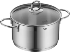 - Die genieteten Griffe des Edelstahl-Kochtopfs bieten einen sicheren Halt und werden während dem Kochvorgang nicht heiß. Der Glasdeckel ohne Dampföffnung ermöglicht es den Garvorgang zu beobachten