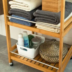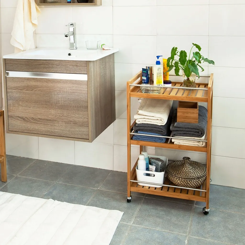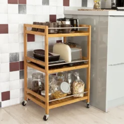 SoBuy Küchenregal, Küchenwagen, Baderegal Aus Bambus Mit Rollen FKW11-N