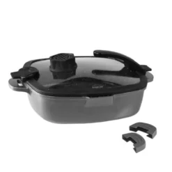 Der patentierte Glasdeckel ist mit der einzigartigen Smell Well-Kartusche ausgestattet. Diese Kartusche bietet wahlweise eine Geruchsfilter- oder Aroma-Funktion. Der Geruchsfilter-Einsatz filtert Essensgerüche, sodass kein unangenehmer Raumduft zum Beispiel bei der Zubereitung von Fischgerichten entsteht. Die Aroma-Funktion kann mit Kräutern, Fruchtschalen o. ä. anstelle des Kohlefilters genutzt werden, um während dem Kochen einen angenehmen Duft in Ihrer Küche zu verbreiten.
