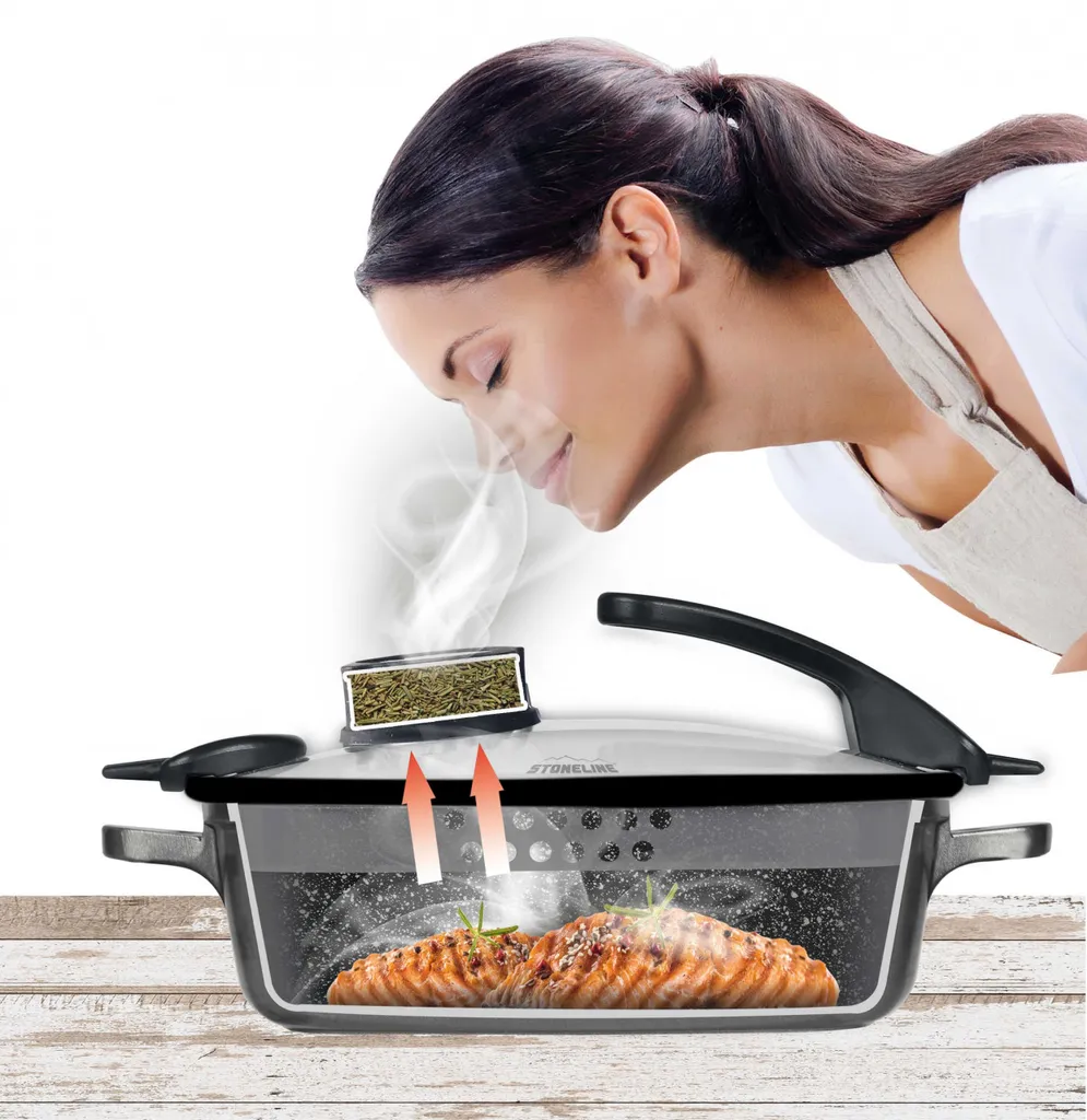 WELTNEUHEIT – Profitieren Sie bei diesem Set mit dem STONELINE® Smell Well Glasdeckel von der kleinsten Dunstabzugshaube der Welt! Damit verbannen Sie unangenehme Essensgerüche aus Ihrer Küche!