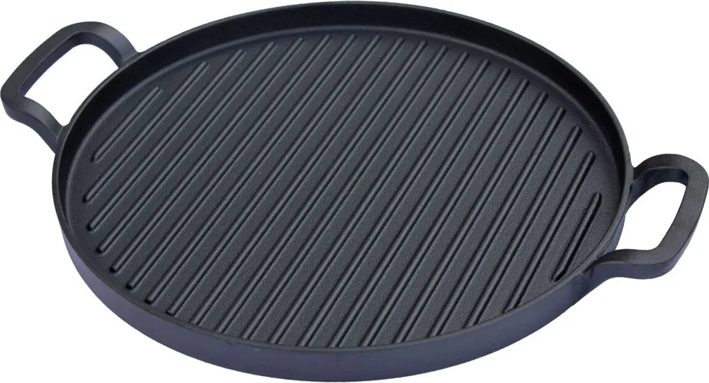 Eine praktische und hochwertige Gusseisenpfanne mit insgesamt 3kg Gewicht – Ideal zum Braten und Garen von Grillgut, wie beispielsweise Fleisch, Fisch oder Gemüse.