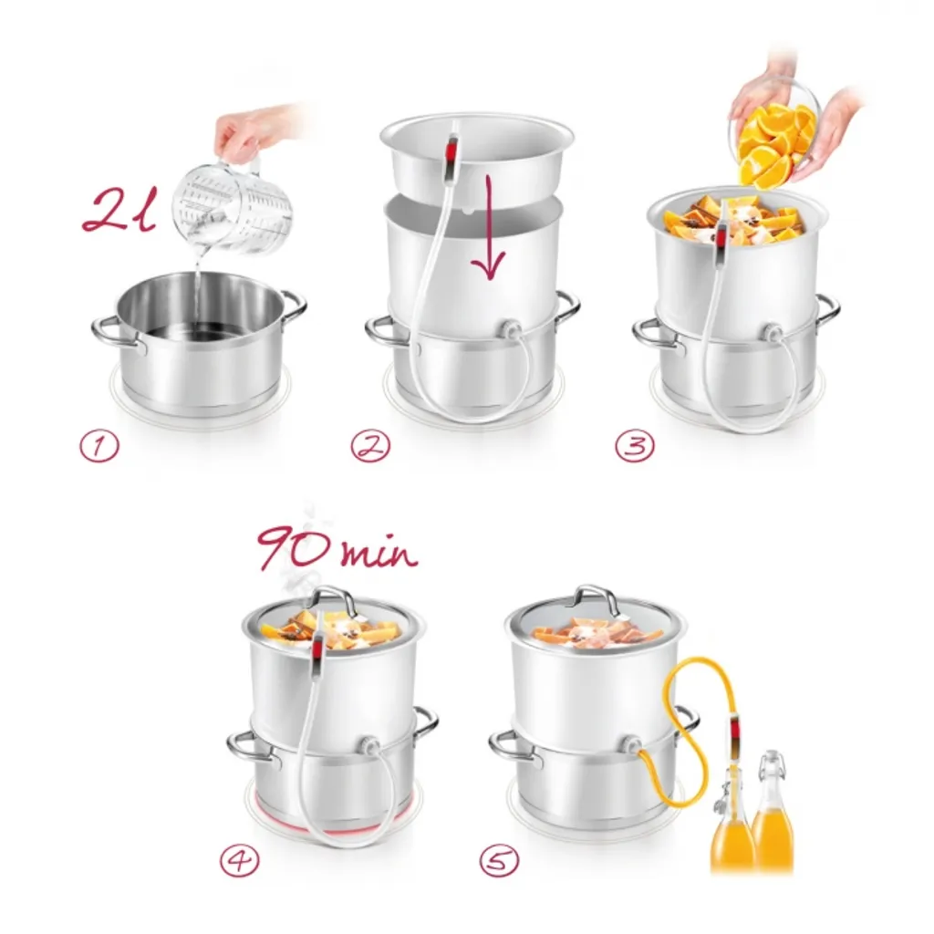 Hervorragend für die Zubereitung von hausgemachten Frucht- und Gemüsesirupen, Säften, Gelees und Konfitüren. Für alle Kasserollen und Töpfe TESCOMA mit dem Deckel ¤ 24 cm und für andere Kochgefäße gleicher Größe geeignet. Aus erstklassigem robustem Kunststoff hergestellt, der biegsame Silikon-Schlauch zum Abfüllen ist mit einem Hahn versehen. Die Gebrauchsanweisung in der Verpackung beiliegt.