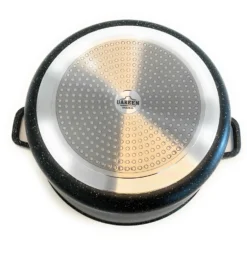 1x Granittopf 44cm mit Glasdeckel Schwarz, 27L