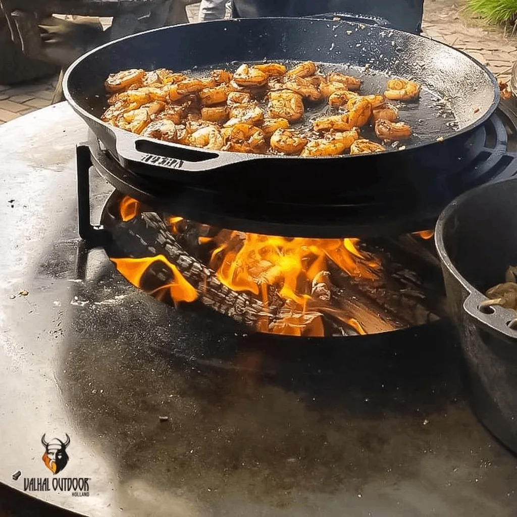 Eigenschaften einer Valhal Outdoor Bratpfanne ⌀ 30 cm: Hochwertige Bratpfanne aus robustem Gusseisen Ausgestattet mit zwei Griffen Vorbehandelt mit natürlichem Öl Beidseitig gespritzt Für alle Wärmequellen geeignet Durchmesser von 30 Zentimetern Volumen von 2,2 Litern Für lebenslanges Kochvergnügen! Nachteile einer Valhal Outdoor Bratpfanne Diese Pfanne ist nicht spülmaschinenfest Valhal Outdoor Bratpfanne ⌀ 30 cm Hochwertige Bratpfanne von der bekannten Marke Valhal Outdoor. Diese Pfanne ist aus Gusseisen gefertigt und für alle Wärmequellen geeignet. Sie können diese Pfanne nicht nur auf einem Keramik-, Halogen-, Induktions- oder Gasherd, sondern auch auf einem offenen Feuer verwenden. Die Produkte von Valhal sind in der Tat ideal für den Einsatz im Freien geeignet. Mit dieser Pfanne können Sie auf einer Kohlenpfanne oder einem offenen Holzfeuer kochen. Diese Bratpfanne hat einen Durchmesser von 30 Zentimetern. Die Pfanne ist an beiden Seiten mit Griffen versehen. Die Griffe haben eine Gesamtbreite von 35,7 Zentimetern. Auch bei diesem Modell gibt es Ausgießer. Die Bratpfannen von Valhal werden in der Fabrik mit natürlichen Ölen behandelt. Dadurch wird die Lebensdauer maximiert. Die Produkte von Valhal sind für ihre Langlebigkeit bekannt. Diese Pfanne ist für ein ganzes Leben gemacht.